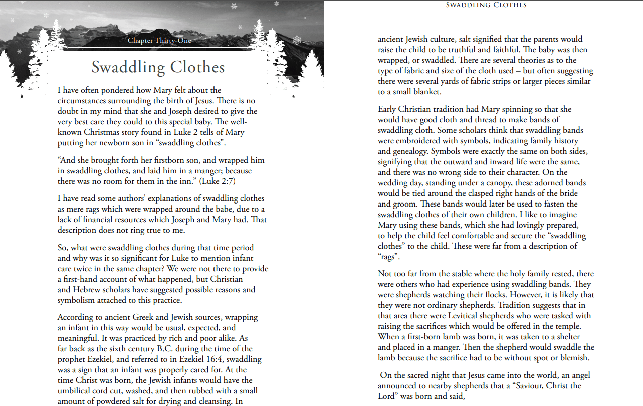 The second section contains stories from the Bible related to the birth of Jesus Christ.